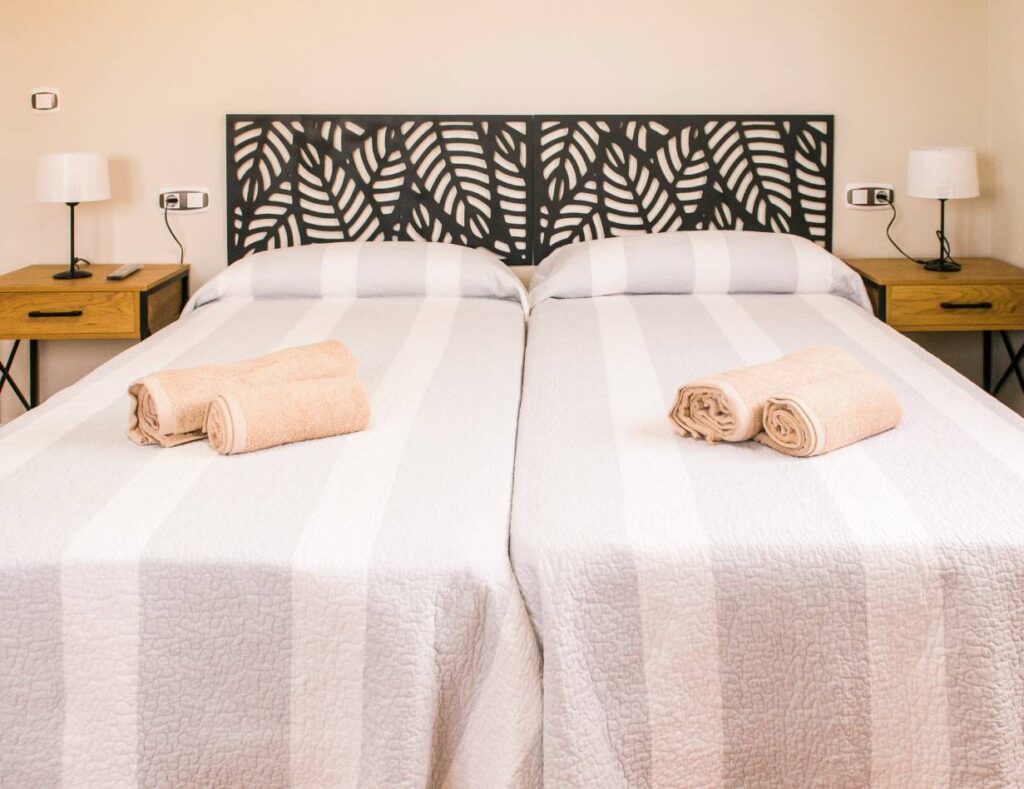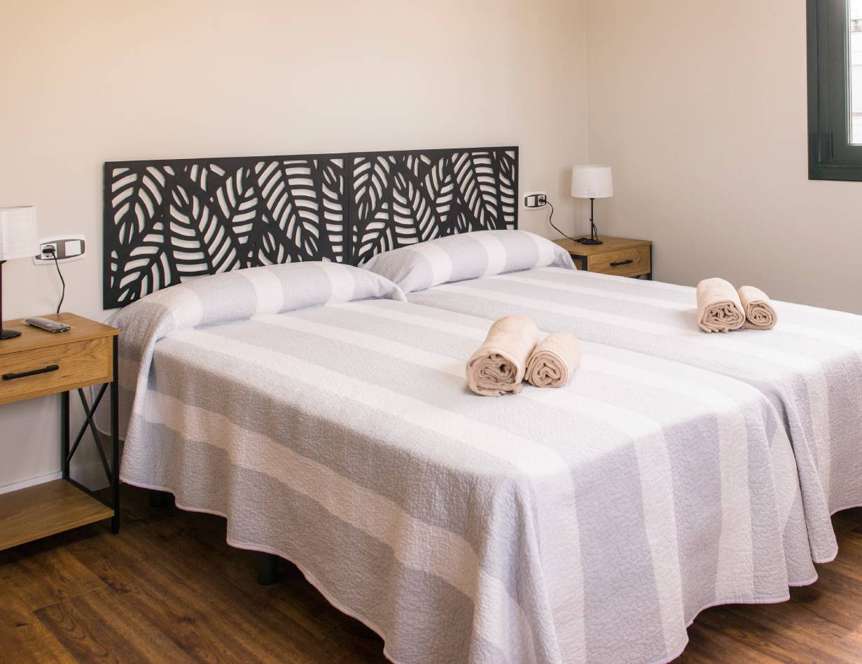 Se trata de una habitación doble con dos camas, que pueden utilizarse unidas o separadas, adaptándose así a las necesidades de cada huésped. Su distribución permite disfrutar de un espacio cómodo y tranquilo durante la estancia.